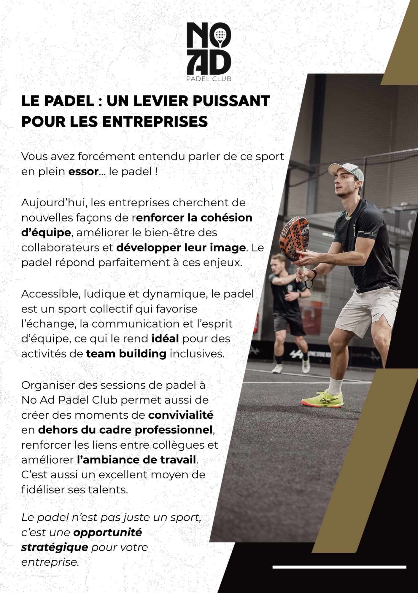 Votre entreprise n’est pas encore partenaire de NO AD PADEL CLUB ?